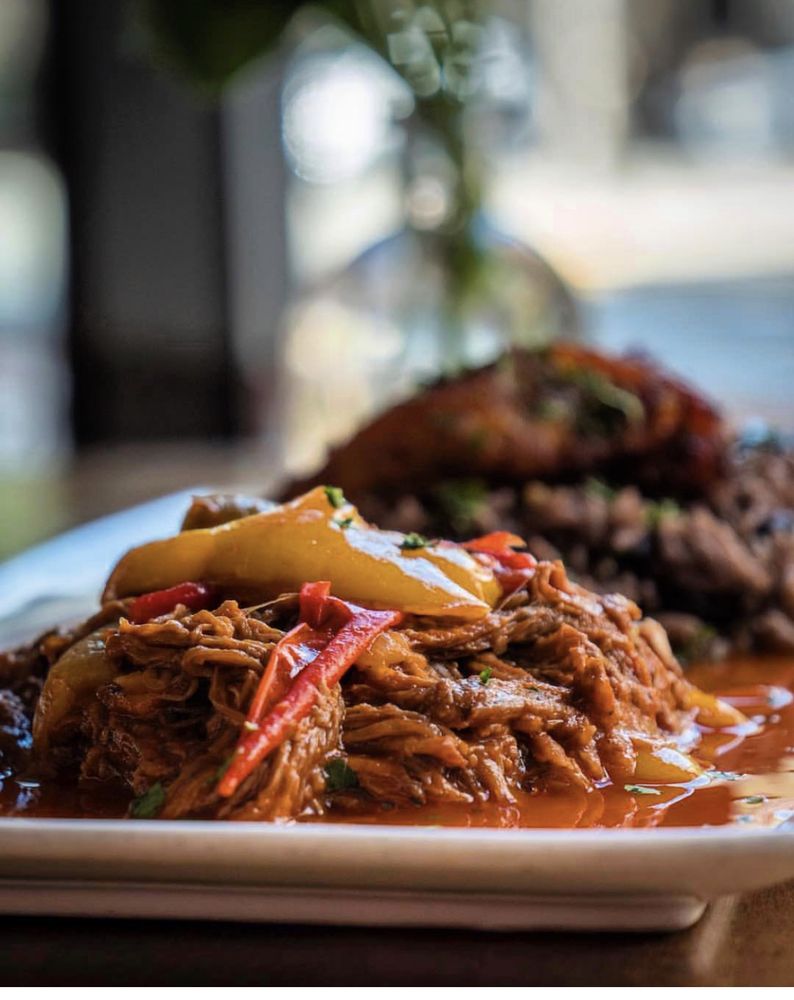 Flank steak shredded and braised in tomato sauce, bell peppers, onions and cuban spices.